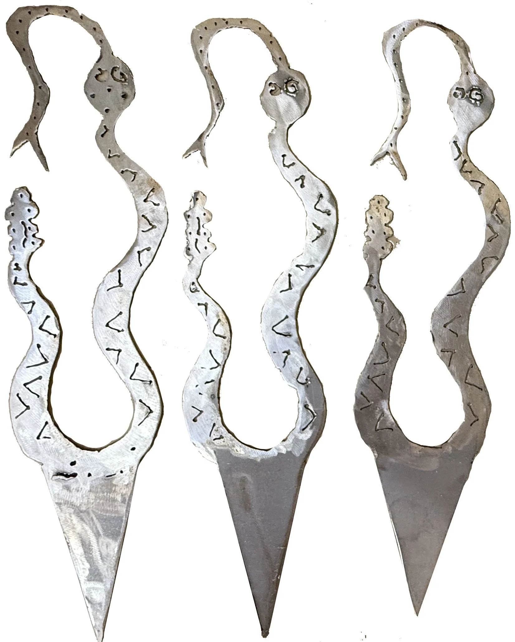 Using a hand-held plasma torch, Paulie (aka Artpimp) creates various desert creatures, alien bunnies and weird landscapes out of 14ga. to 20ga. steel and aluminum sheet metal. Each of his creations are one-of-a-kind. No CNC or laser cutter is used which makes each piece truly unique.
